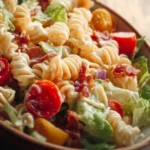 In just about 30 minutes, you can whip up a delightful and satisfying BLT Pasta Salad that’s packed with flavors and textures. This dish stands out because of its juicy tomatoes, crunchy lettuce, and creamy dressing all mingling beautifully with al dente pasta.