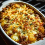 Get ready for a dish that’s sure to bring smiles to your family gatherings: Cheesy Ground Beef and Potato Casserole! This sumptuous casserole boasts a crispy top layer, rich with melted cheese, and a savory beef-and-potato filling that makes every bite an explosion of flavor. It’s the kind of comfort food that warms your heart and tummy, reminiscent of cozy winter evenings spent surrounded by loved ones.