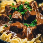 Leftovers of Crockpot Beef Tips and Noodles can be stored in an airtight container in the refrigerator for up to three days. If you’d like to keep it longer, consider freezing portions in freezer-safe bags; it will keep for about three months. When reheating, add a splash of beef broth or cream to reintroduce moisture and prevent it from drying out. Simply heat it on the stove over low heat or in the microwave until warmed through.