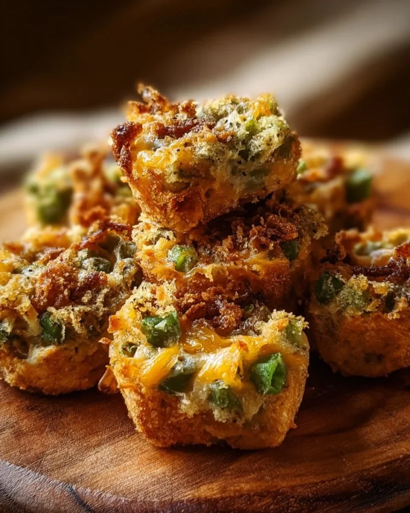 Finally, let’s not forget about the heavenly toppings! Crunchy, seasoned fried onions provide that perfect finishing touch that takes these bites to the next level. If you love traditional green bean casserole, just wait until you try these bites. Don’t miss out—gather your ingredients and let’s get cooking!