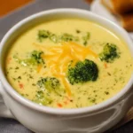 Imae sitting down to a warm bowl of Panera Broccoli Cheddar Soup, the rich aroma inviting you in for a taste. Creamy, cheesy, and packed with vibrant green broccoli, this soup is like a hug in a bowl. It’s one of those dishes that prove comfort food doesn’t need to be complicated; it’s simple, quick to prepare, and is sure to please even the pickiest of eaters. A fun fact about this dish is that it has become a fan favorite at Panera, with people often craving its creamy texture and savory flavor. Whether paired with a crusty bread bowl or enjoyed solo, it’s a dish that brings smiles to the dinner table.