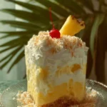 Pina Colada Lush has many facets that make it irresistible. Firstly, its main highlight is its creamy texture paired with a sweet tropical flavor profile. Imagine velvety layers of cream, coconut, and pineapple melting in your mouth—pure bliss! Secondly, this dessert is a true cost-saver. Making it at home means avoiding pricey restaurant desserts but still impressing your guests with a stunning dish! Lastly, with toppings like toasted coconut flakes and crushed pineapple, you can customize the final touch to your heart’s content, creating a dish that’s not just tasty but visually appealing too.