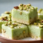 - Assemble the Bars: Once the cookie base is cooled, spread the pistachio pudding layer evenly over the top. If desired, sprinkle with chopped pistachios for added crunch.