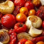 - Roast the Tomatoes: Preheat your oven to 400°F (200°C). Cut the tomatoes in half and place them cut side up on a baking sheet. Add the chopped onion and minced garlic. Drizzle with olive oil, salt, pepper, and dried basil. Roast for about 25-30 minutes or until the tomatoes are soft and beginning to caramelize.