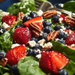 Eating a vibrant, colorful salad can be an exhilarating experience, and that’s exactly what you get with a Strawberry & Blueberry Spinach Salad with Pecans and Feta. This dish combines the juicy sweetness of strawberries and blueberries with the earthy tones of spinach, creating a refreshing and delightful explosion of flavors in each bite. Fun fact: Did you know that the word “salad” comes from the Latin word “sal,” meaning salt? Salads were originally dressed with salt and vinegar to preserve ingredients! This salad, however, takes it up a notch with the creamy feta and crunchy pecans, making it perfect for a quick lunch, a light dinner, or a hearty side dish at family gatherings.